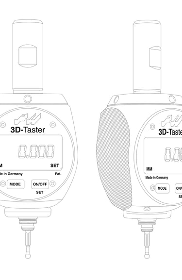 I created outline graphics for all the different 3D sensor models from Haimer GmbH, which will be used in the redesign of their packaging. Below is a comparison between the outlines and the corresponding product photos.