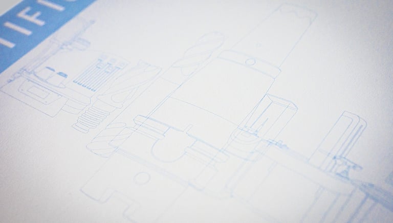 Since the previous design was quite outdated, I set out to create a modern version. This process began with the search for a new, more modern paper that is uncoated, and culminated in the debossing of the word “Certificate.” It was printed in single-color mode using a PANTONE color. I created the illustration by drawing and arranging all of Haimer GmbH’s key machines and products as outlines.