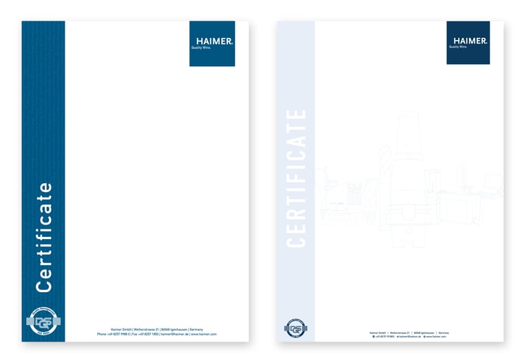 This is a redesign of a certificate for Haimer GmbH.