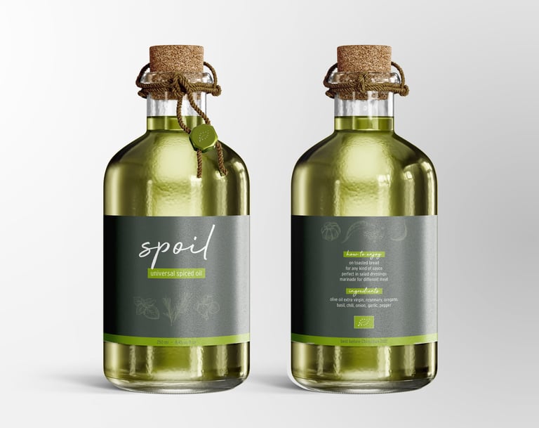 The name Spoil is a portmanteau of spice and oil, which pretty much describes what it is. The finest olive oil, infused with aromatic herbs for hours at a strictly controlled temperature, elevates every dish to a new level of flavor. Universally applicable and almost dangerously addictive, it is one of my favorite products in the kitchen.