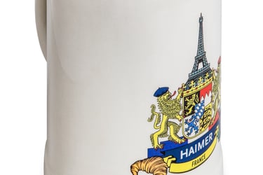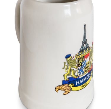 As part of my work at HAIMER, I created this stone beer mug, which combines traditional Bavarian design with France. It was produced as a customer gift.