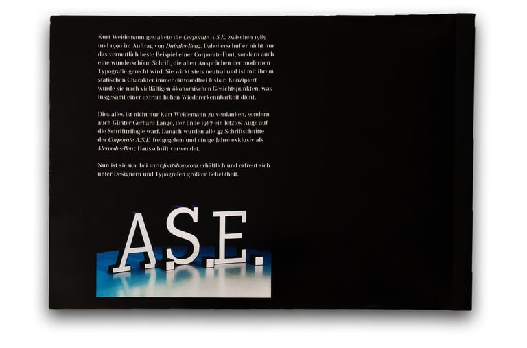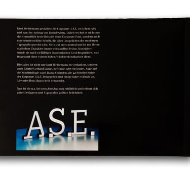 This is a sample of the Corporate A.S.E. font by Kurt Weidemann. It was created as part of my studies, but also found its way into the public domain in a modified form.
