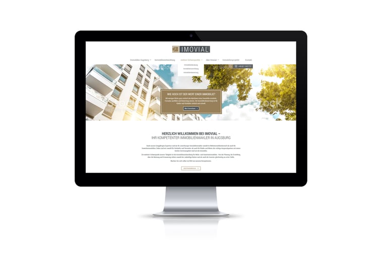 IMOVIAL is a real estate agent in the Augsburg area. A new word and figurative mark was developed and expanded into a complete corporate design. This resulted in business cards, business documents, and a website.