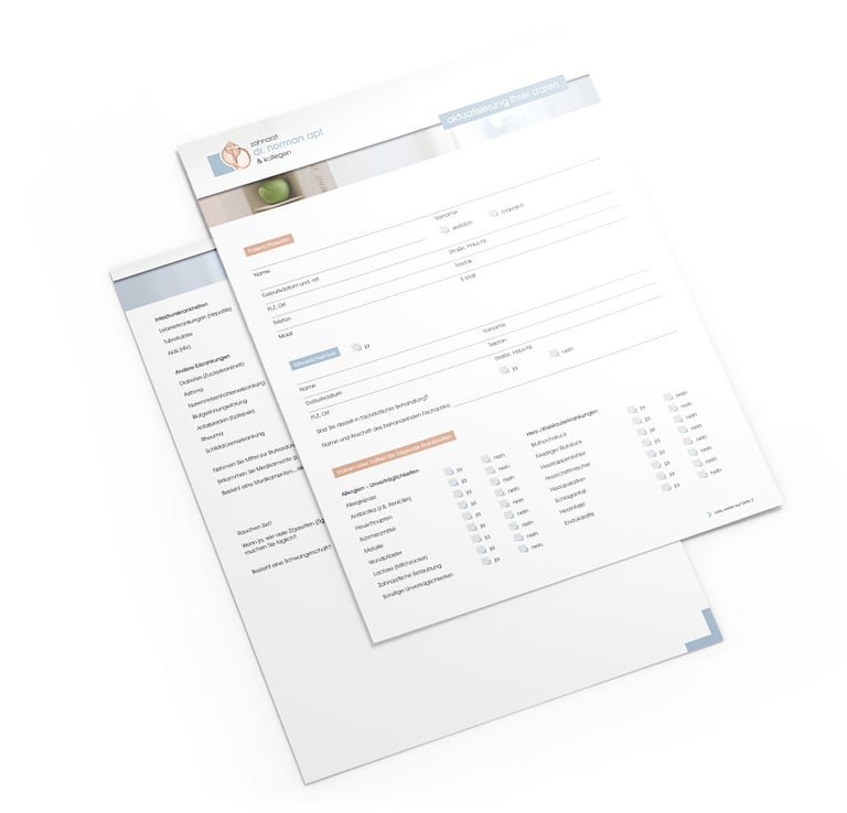 Dr. Apt is a renowned dentist from Schwabmünchen near Augsburg. The previous CI was completely redesigned. A large number of documents and forms were created, including business documents such as business cards and letterheads, notepads and writing pads, outdoor signage, and a website.